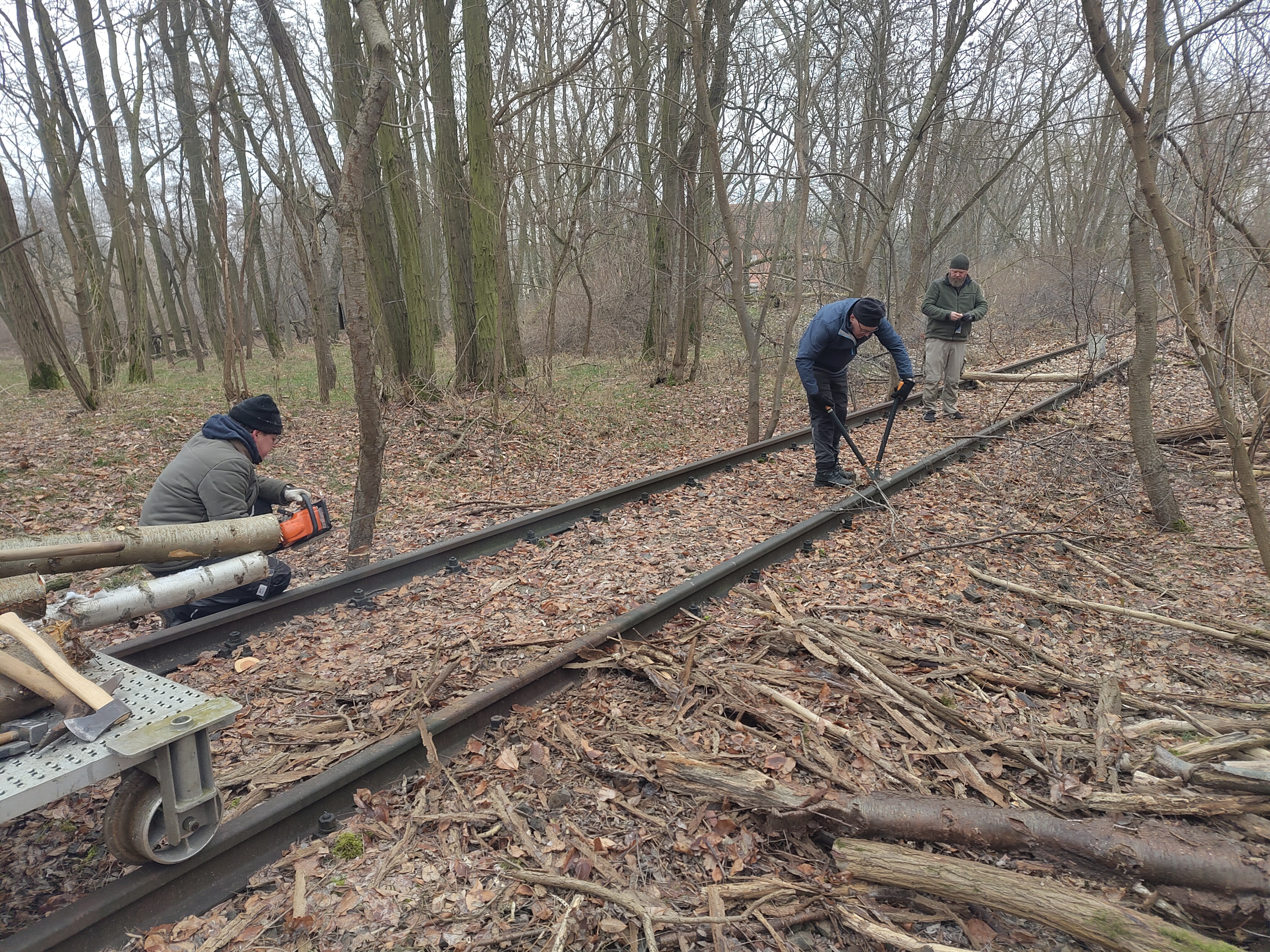 Bei den Vorbereitungen für die LM am 11-12.04.2026 fanden neben den Arbeiten am Parcours auch Arbeiten am Gleis 9 3/4 statt, die entgegen vorsichtiger Prognose erfreulich weit führten. Auf annähernd der gesamten Strecke könnten Hindernisse geräumt und freie Fahrt sichergestellt werden.